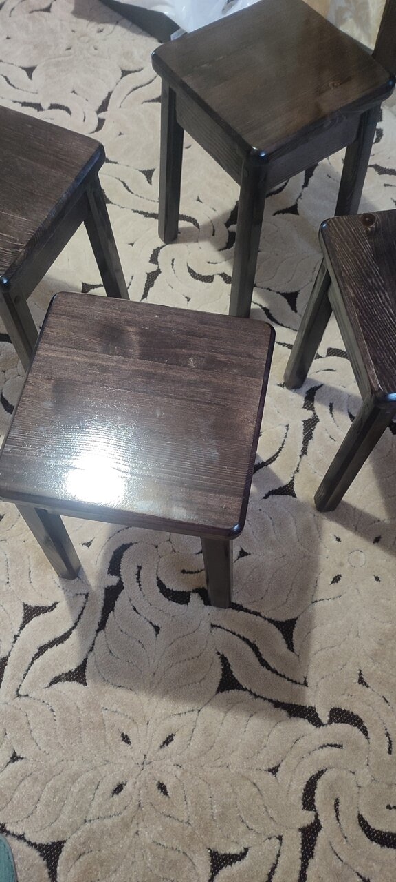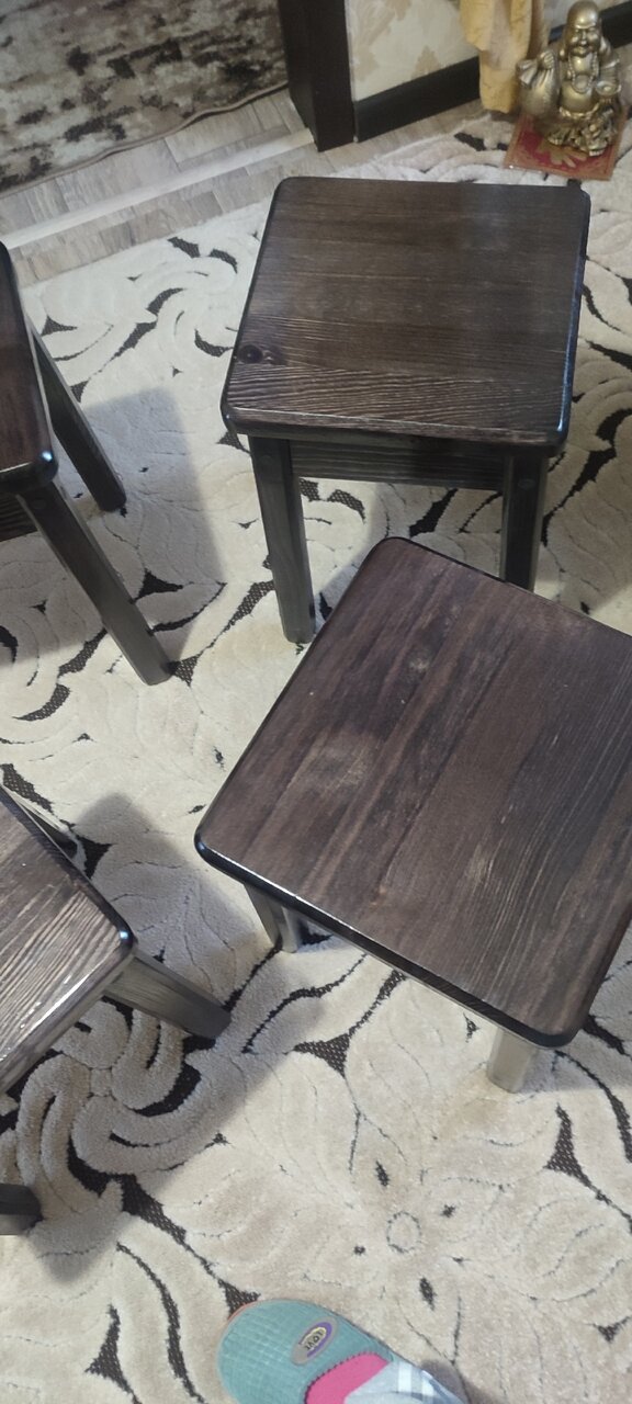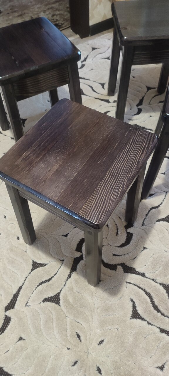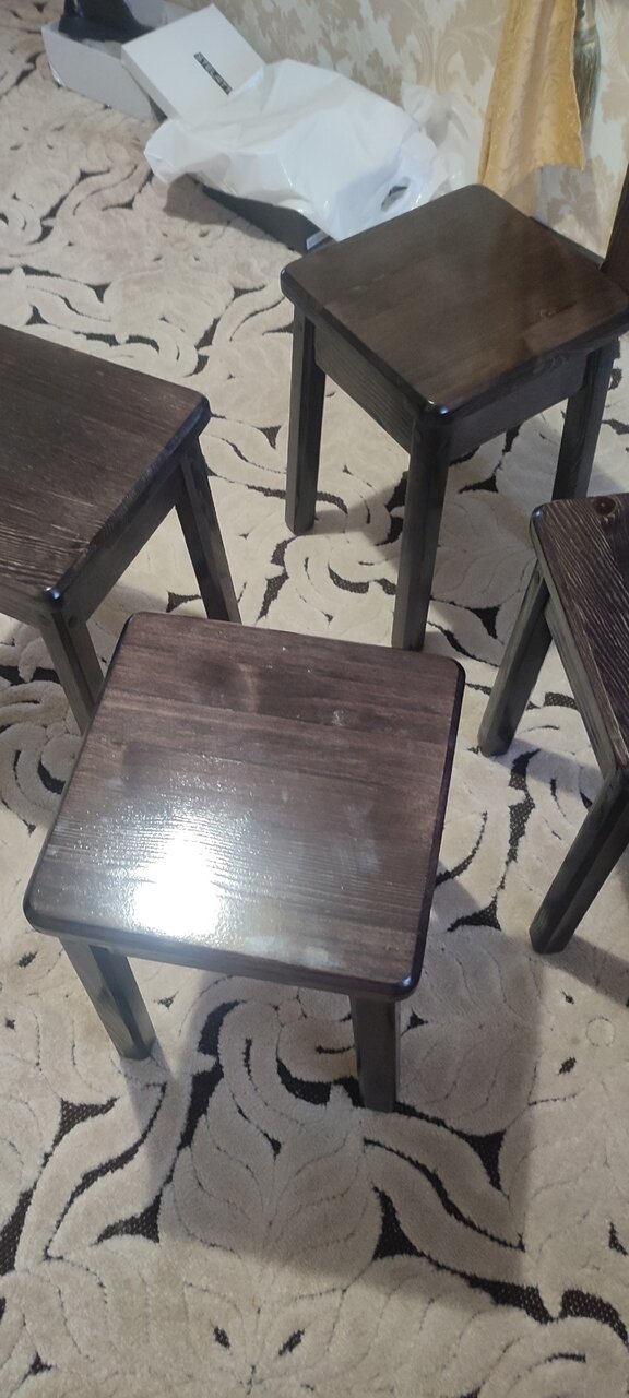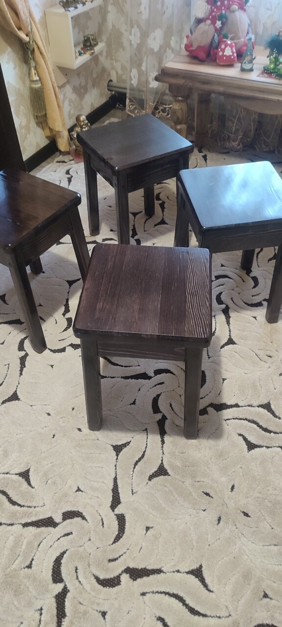 В наличии набор табуретов из 4 штук. Массив сосны, цена и качество от производителя.