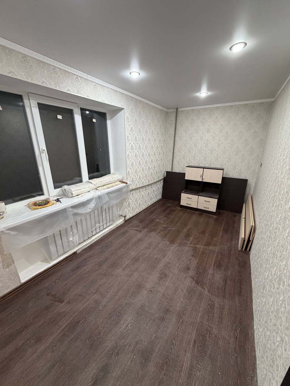 В квартире делался ремонт с нуля,построен полностью новый балкон,везде установлен новый стеклопакет,проводка,трубы,тёплый пол.Осталось по мелочи доклеить обои,плитку и линолеум (всё куплено и останется на квартире).Кондиционер,газовая плита так же новые и останутся на квартире.