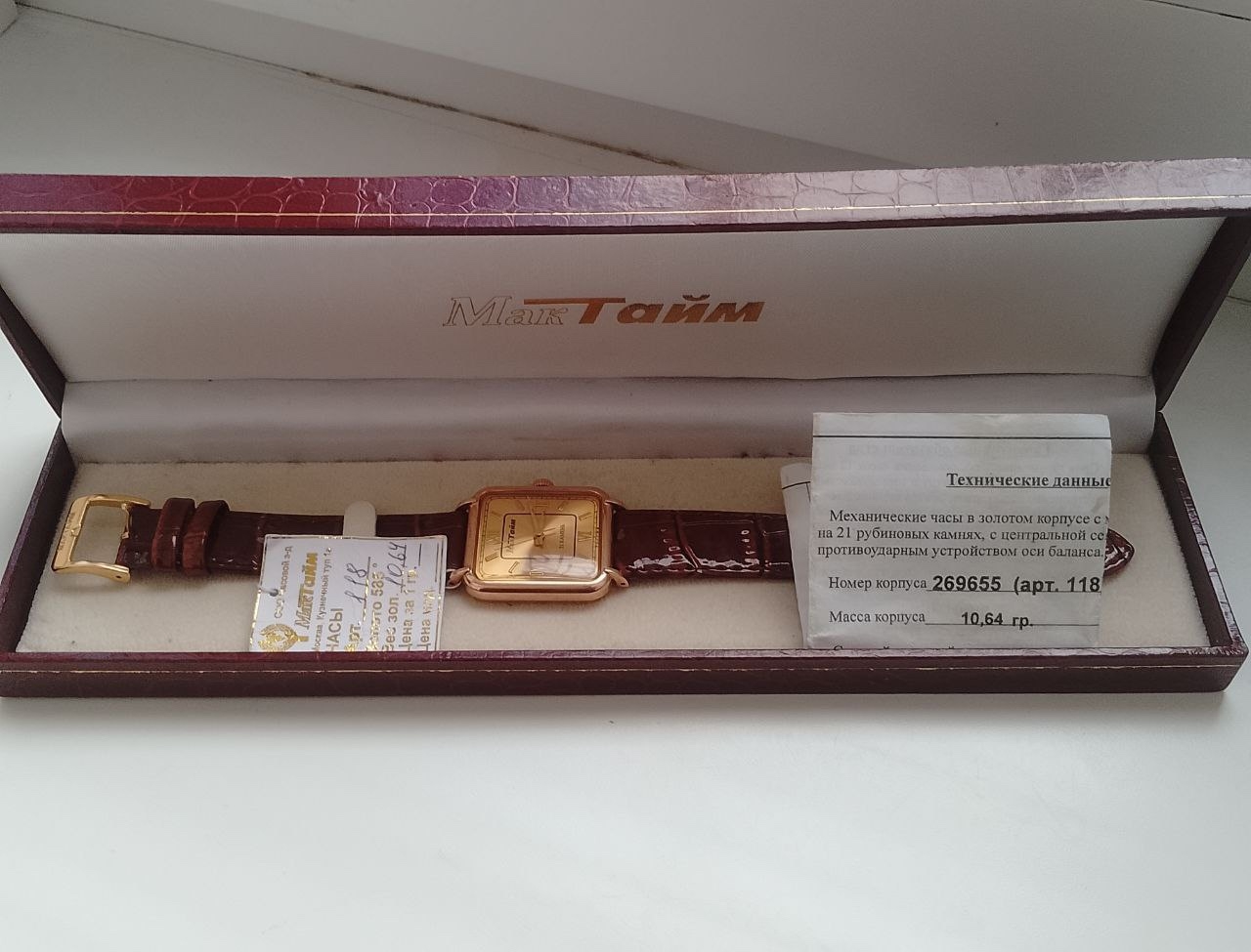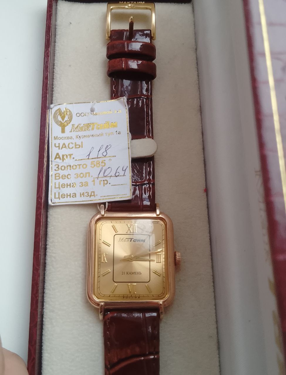 Продам Заводские Механические Часы , Мак Тайм , На Фирменном Кожаном Коричневом Ремешке МакТайм , Чисты Вес Золота ! , 10.64Проба 585, Часы Абсолютно Новые! Московский Ювелирный Завод , На Задней Крышке Транспортировочная Пленочка, Полный Комплект , Коробочка Мактайм , Бирка , И Паспорт ,Подтверждающий Номер Корпуса ., +79494933142