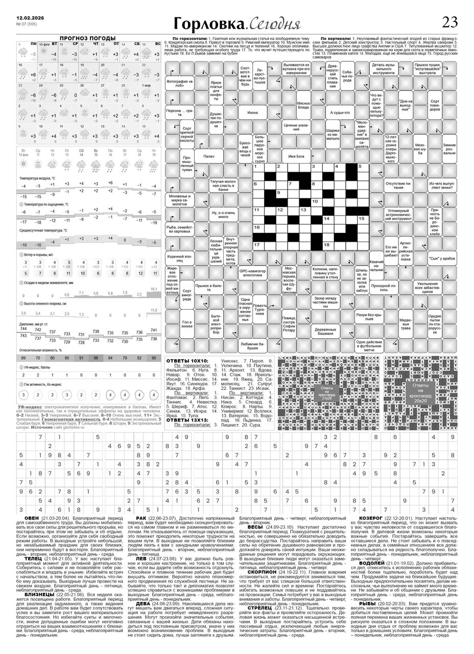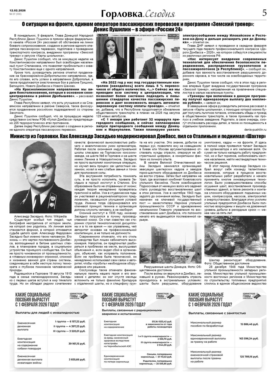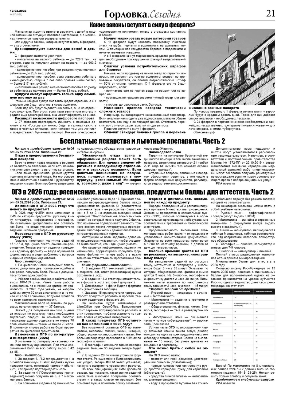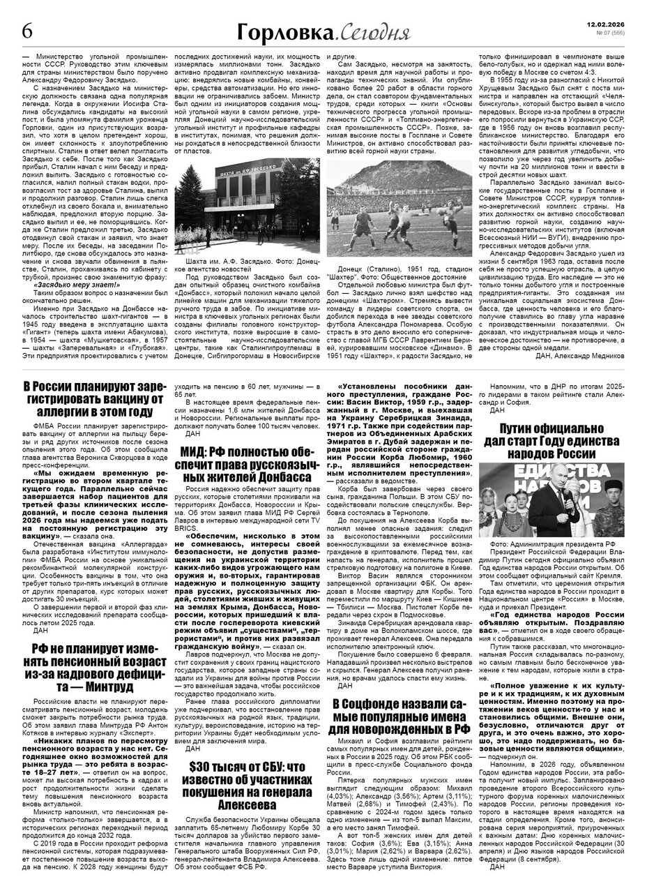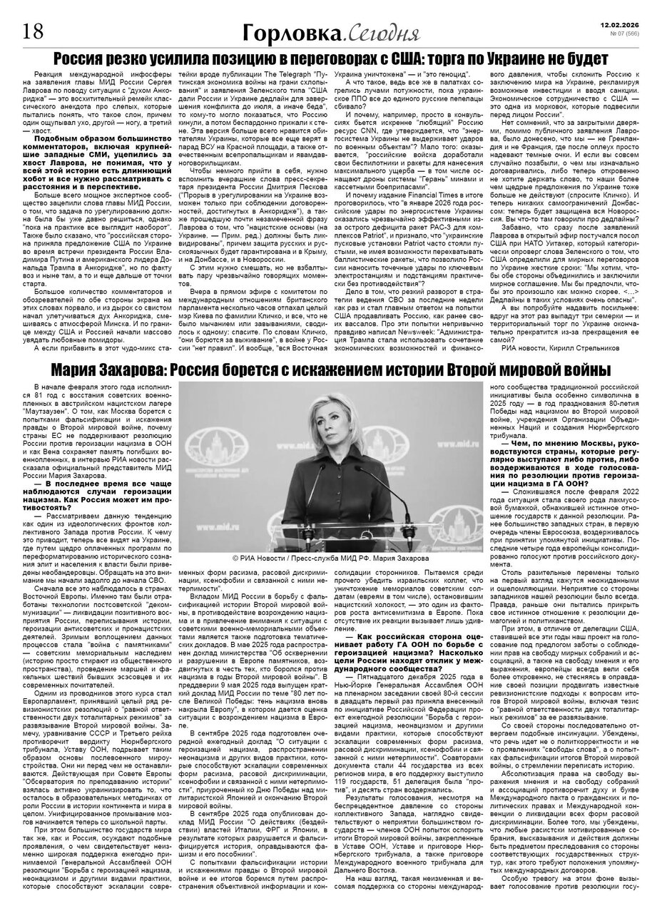 🗞 12 февраля 2026 года, вышел новый выпуск общественно-информационной газеты «Горловка.Сегодня» 🇷🇺 №07 (566). 24 полосы, тираж 1900 экз., газета выходит каждый четверг. 📰 https://t.me/gorlovka