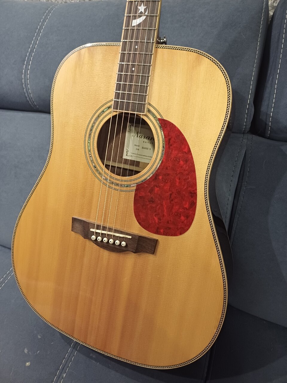 Продам Акустическую гитару Naranda DG405SN. Состояние новой! Эта Naranda не из бюджетных по 8 рулей. Гриф ровный! Гитара из МАССИВА. Абсолютно новые струны D’Addario 10-47 XS Phosphor Bronze. Верхний и Нижний порожек КОСТЬ — установлены с завода.