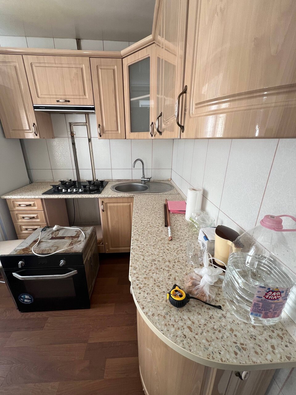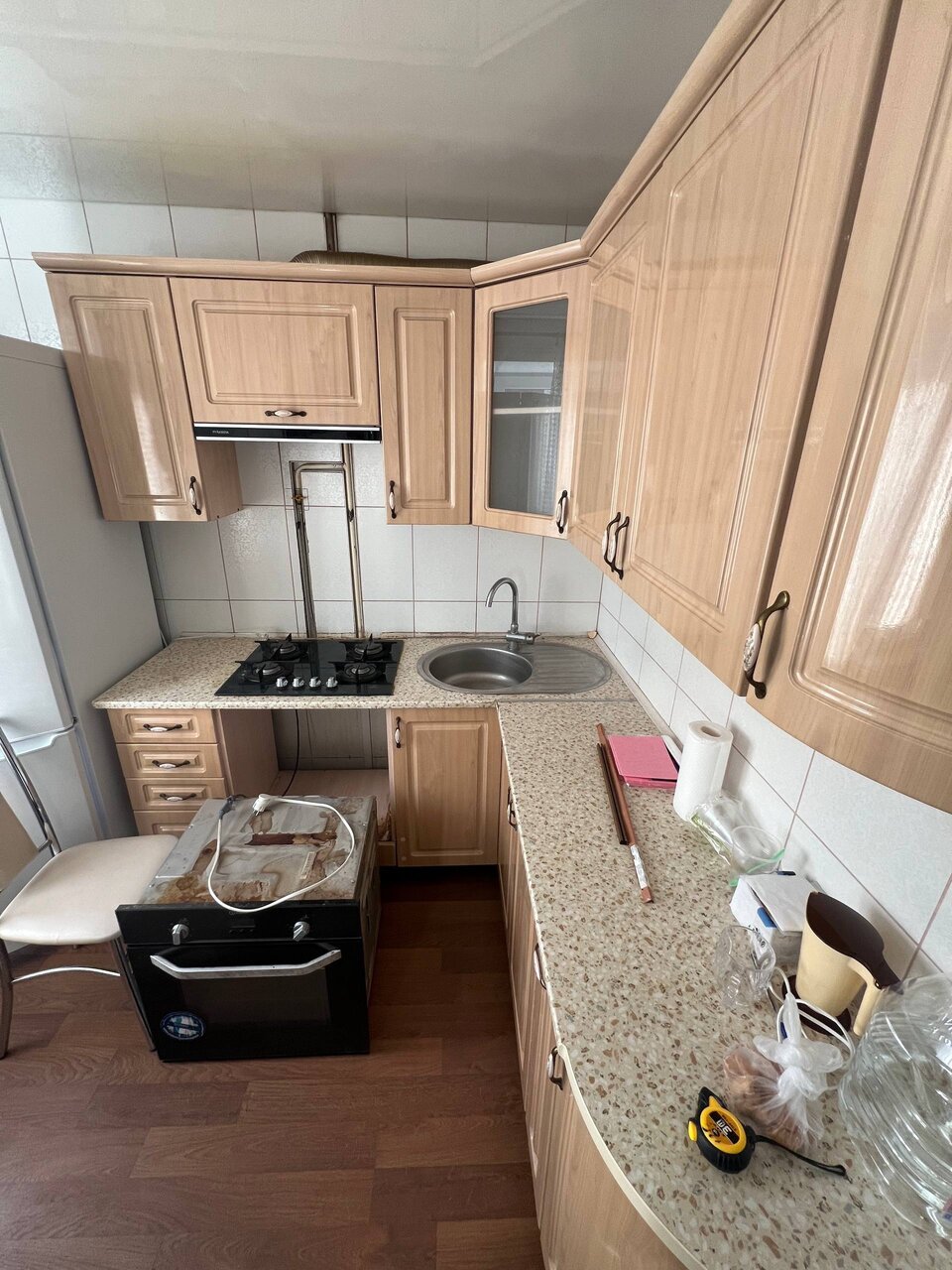 В продаже кухня В целом в отличном состоянии есть не большой нюанс на фото замеры 185 на 197 цена за кухню 30000,если с техникой (кроме холодильника) 50000 возможно доставка на дом по вопросу покупки по телефону +79494639285