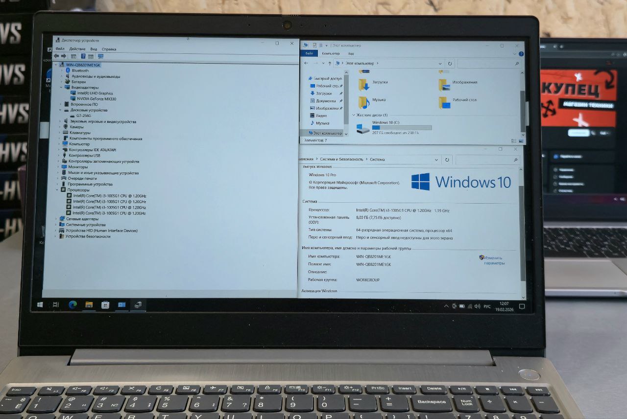 Процессор: Intel Core i3 (10‑го поколения) — обеспечивает стабильную работу при выполнении типовых задач: офисными приложениями, веб‑сёрфингом, видеоконференциями. ⚙