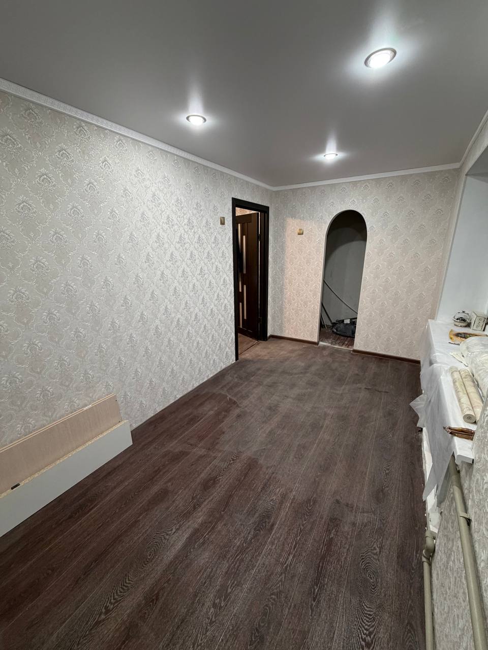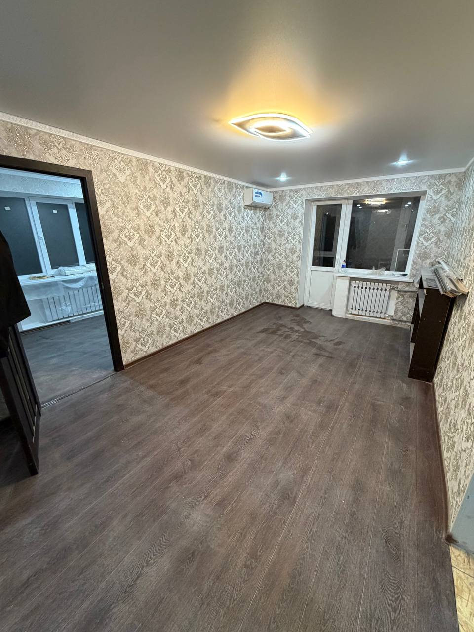 В квартире делался ремонт с нуля,построен полностью новый балкон,везде установлен новый стеклопакет,проводка,трубы,тёплый пол.Осталось по мелочи доклеить обои,плитку и линолеум (всё куплено и останется на квартире).Кондиционер,газовая плита так же новые и останутся на квартире.