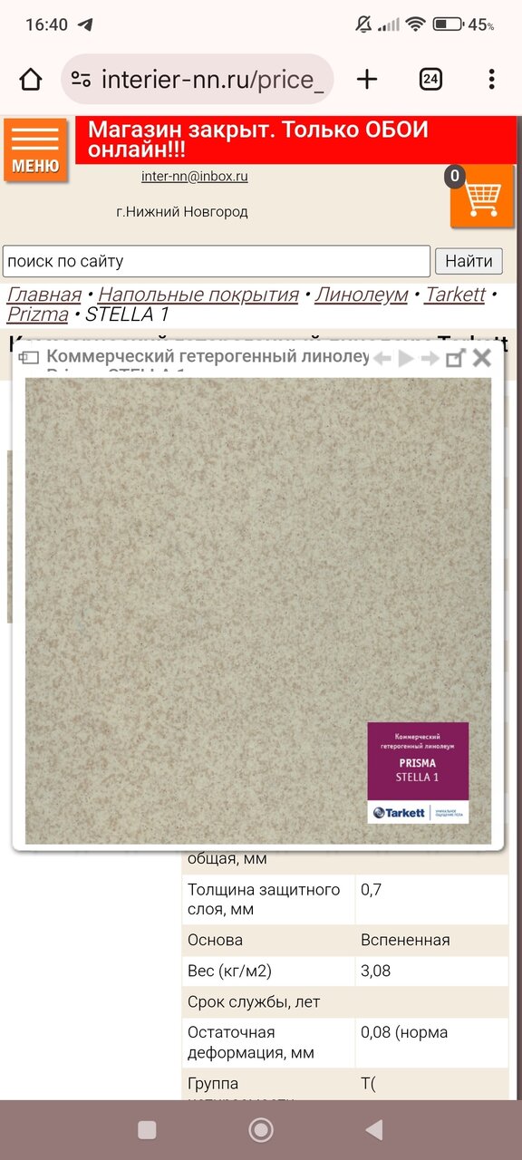 Продам новый коммерческий линолеум Tarkett. В одном рулоне — 46 м2 (ширина — 2 метра, длина — 23 пог. метра, толщина — 2 мм). Цена за 1 рулон — 40 000. В наличии — 2 рулона. Продаётся только рулоном, не режется. Макеевка. Самовывоз. Телефон:+7(949) 450-07-06.