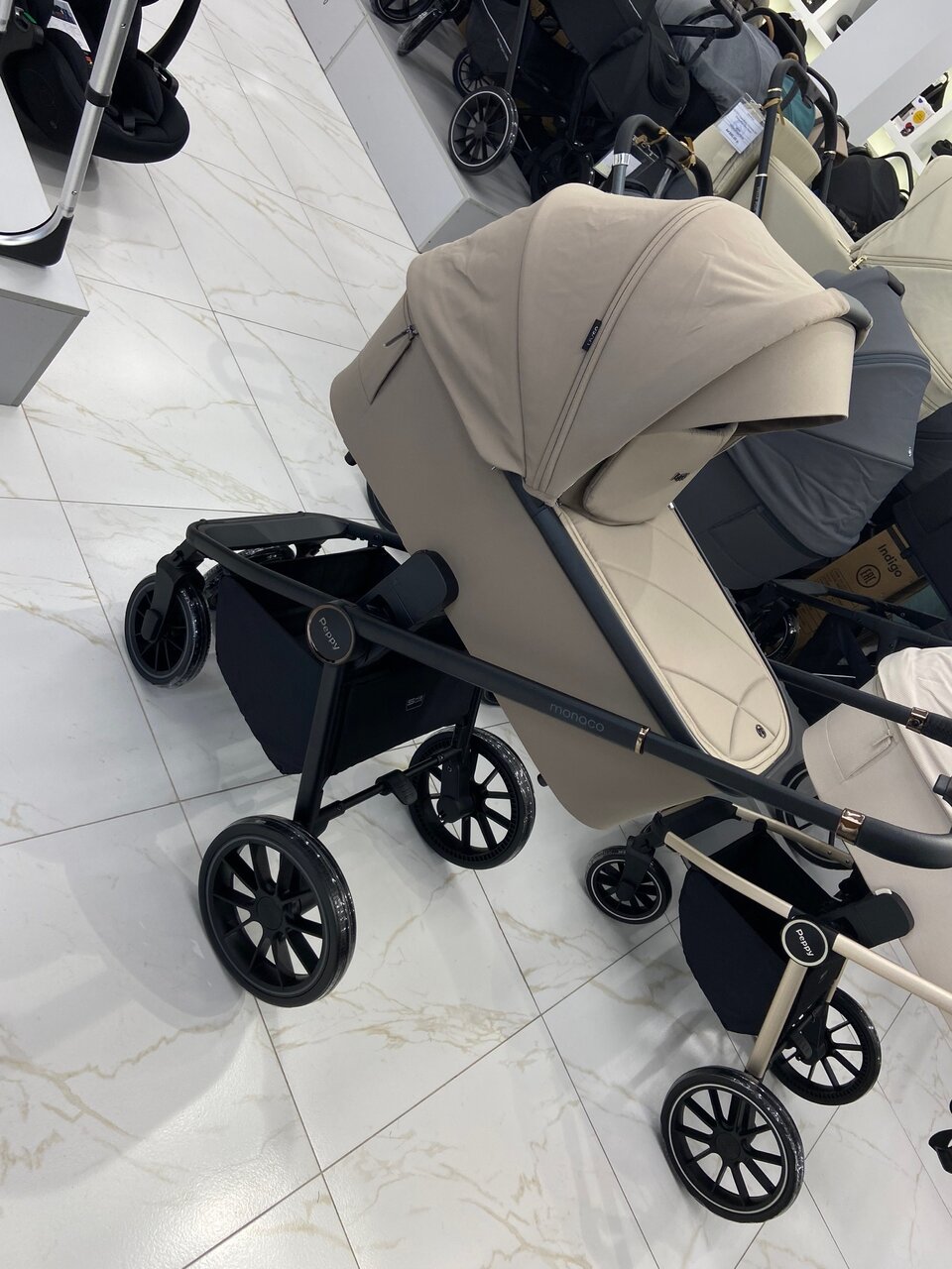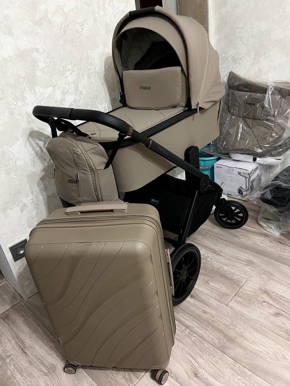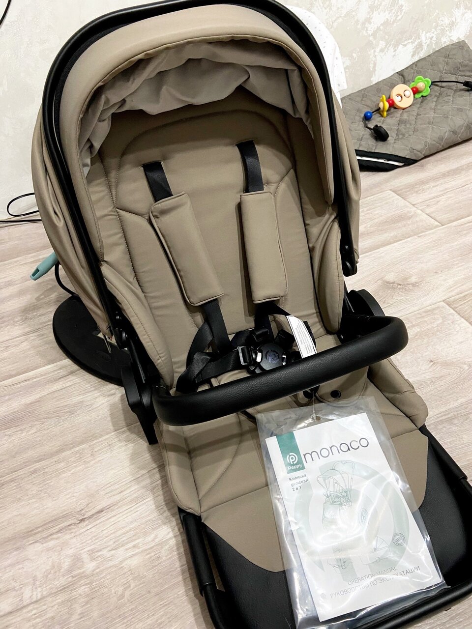 Продаем коляску Peppy Monaco, в цвете Sandstone (песочный), состояние отличное, полная комплектация, дождевик, тент от солнца, прогулочный блок, люлька с подъемом матраса