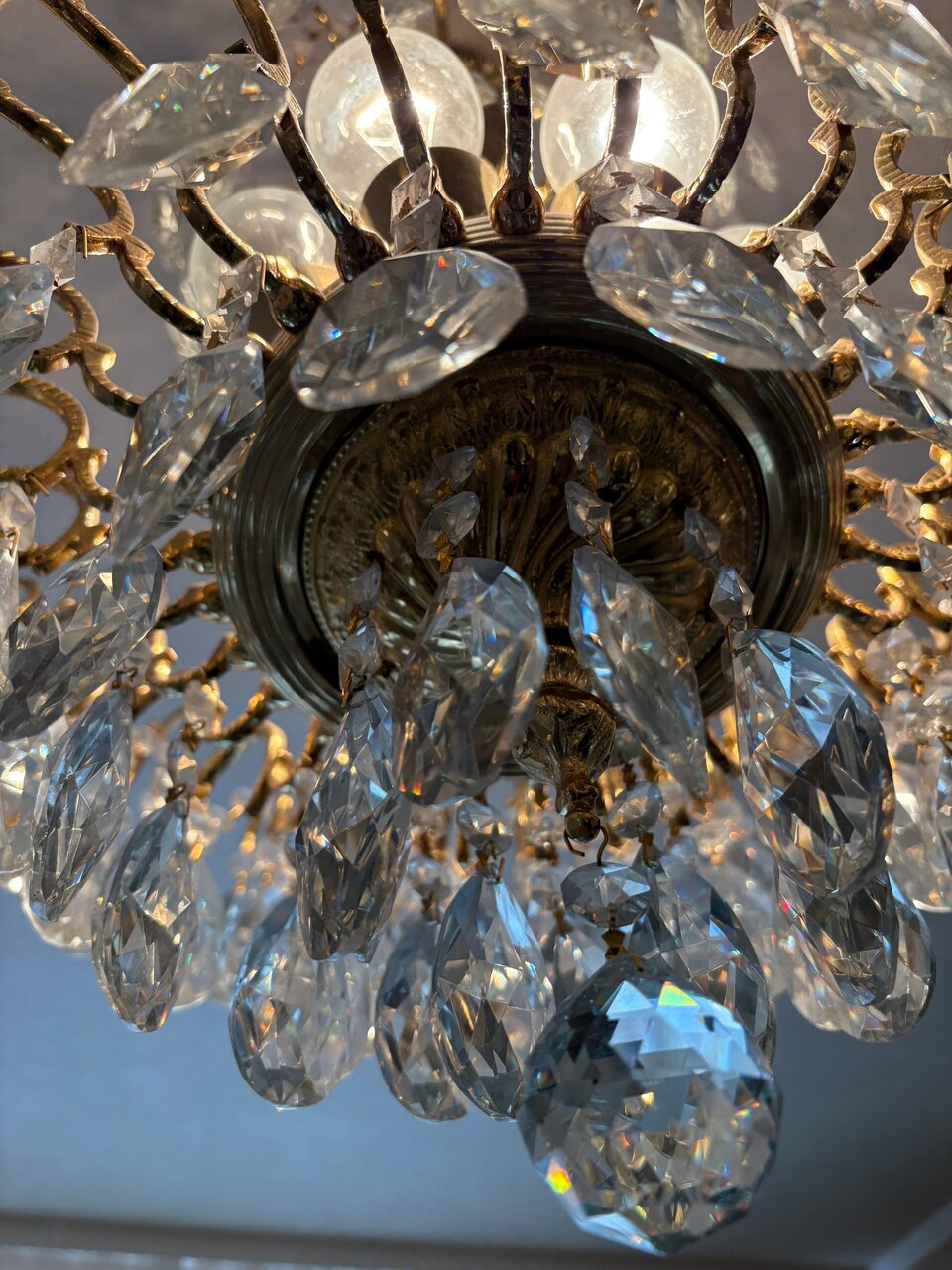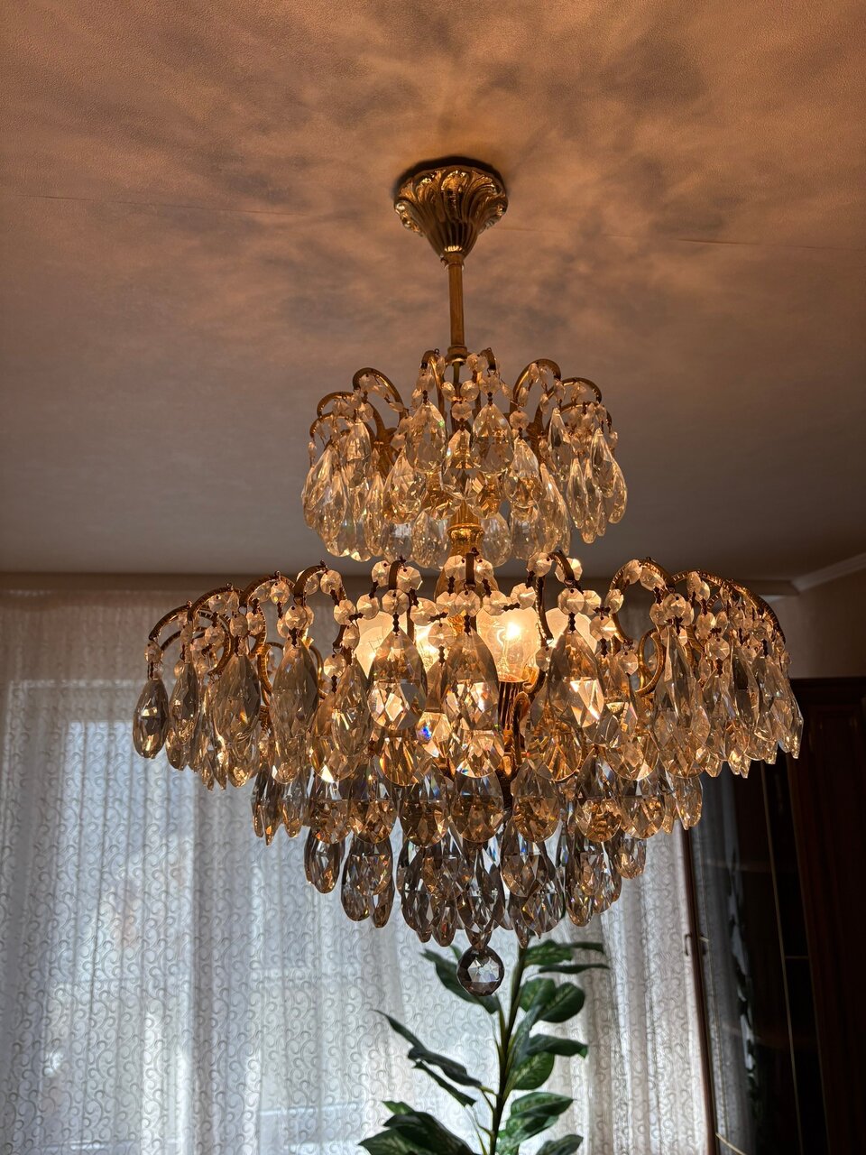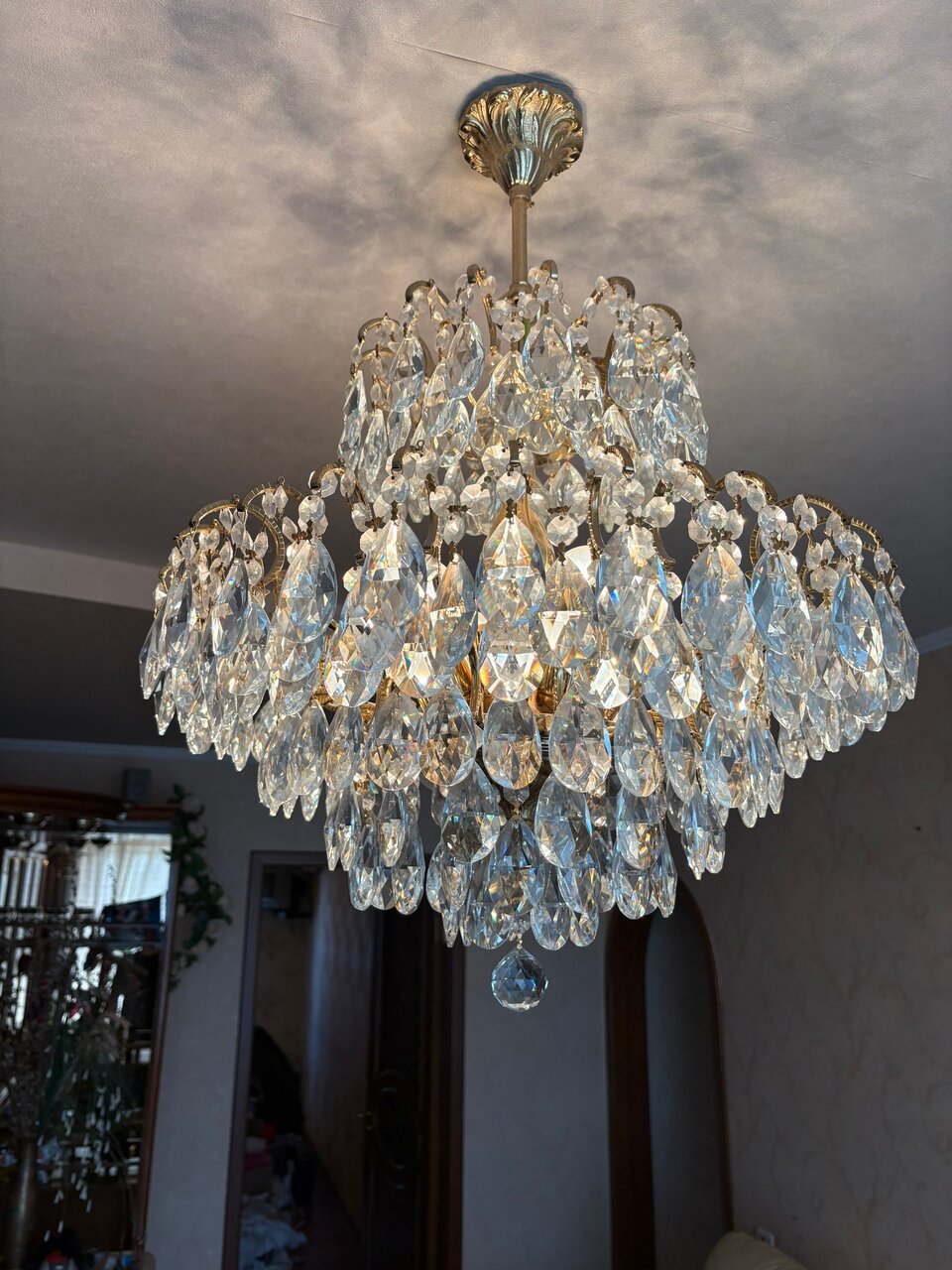 Люстра потолочная хрустальная на каркасе из бронзы на 8 ламп. Италия. Высота 77 см, в диаметре 60 см. Вес около 15 кг. Донецк, Галактика. +79493859357 Сергей