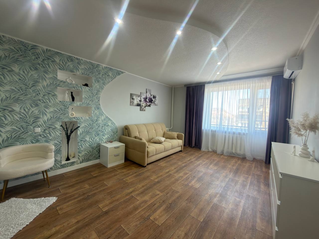 Продам 1-но ком. кв-ру, ул. Минская 63, 8/9. Квартира угловая, утеплена. В доме работает лифт. Общая площадь — 38 кв.м. Квартира уютная, ремонт выполнен в 2025 году. Сантехника заменена, установлены пластиковые трубы. Батареи чугунные. В ванной комнате стены отделаны под венецианку, пол покрыт плиткой. Краны новые, установлен водонагревательный бак. Также в квартире есть кондиционер. Мебель и техника остаются новым владельцам.