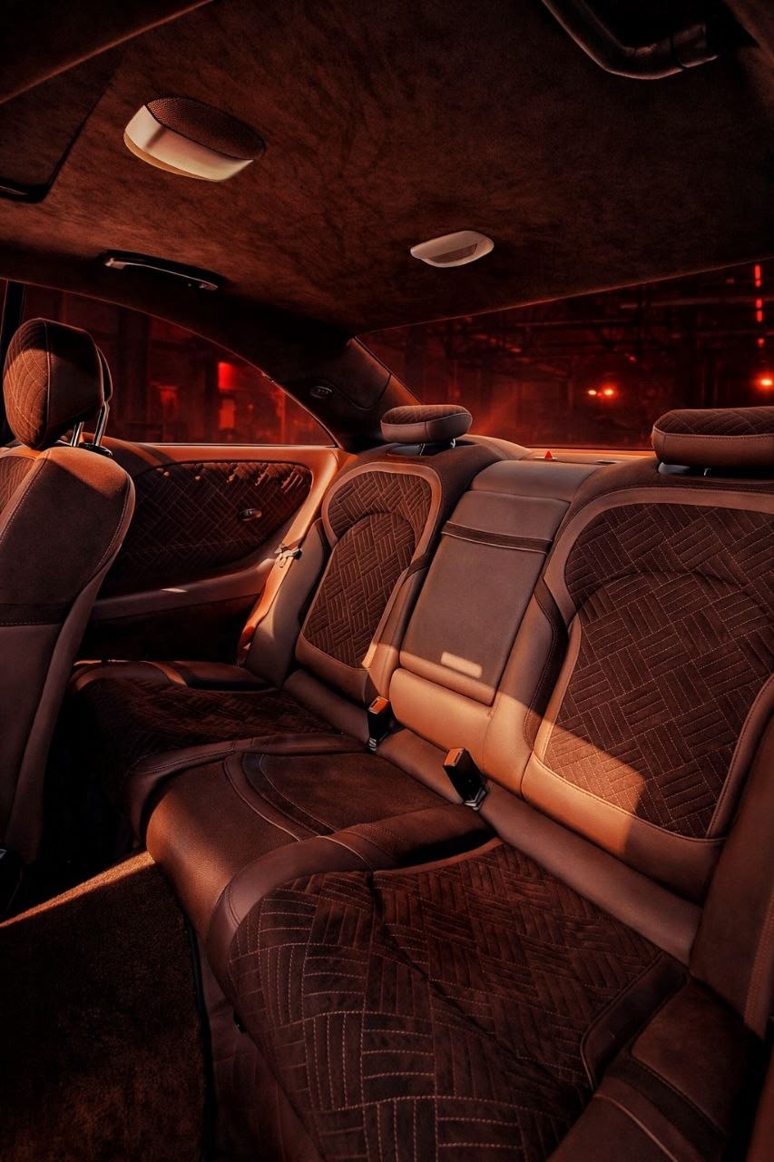 Салон полностью перешит в алькантару