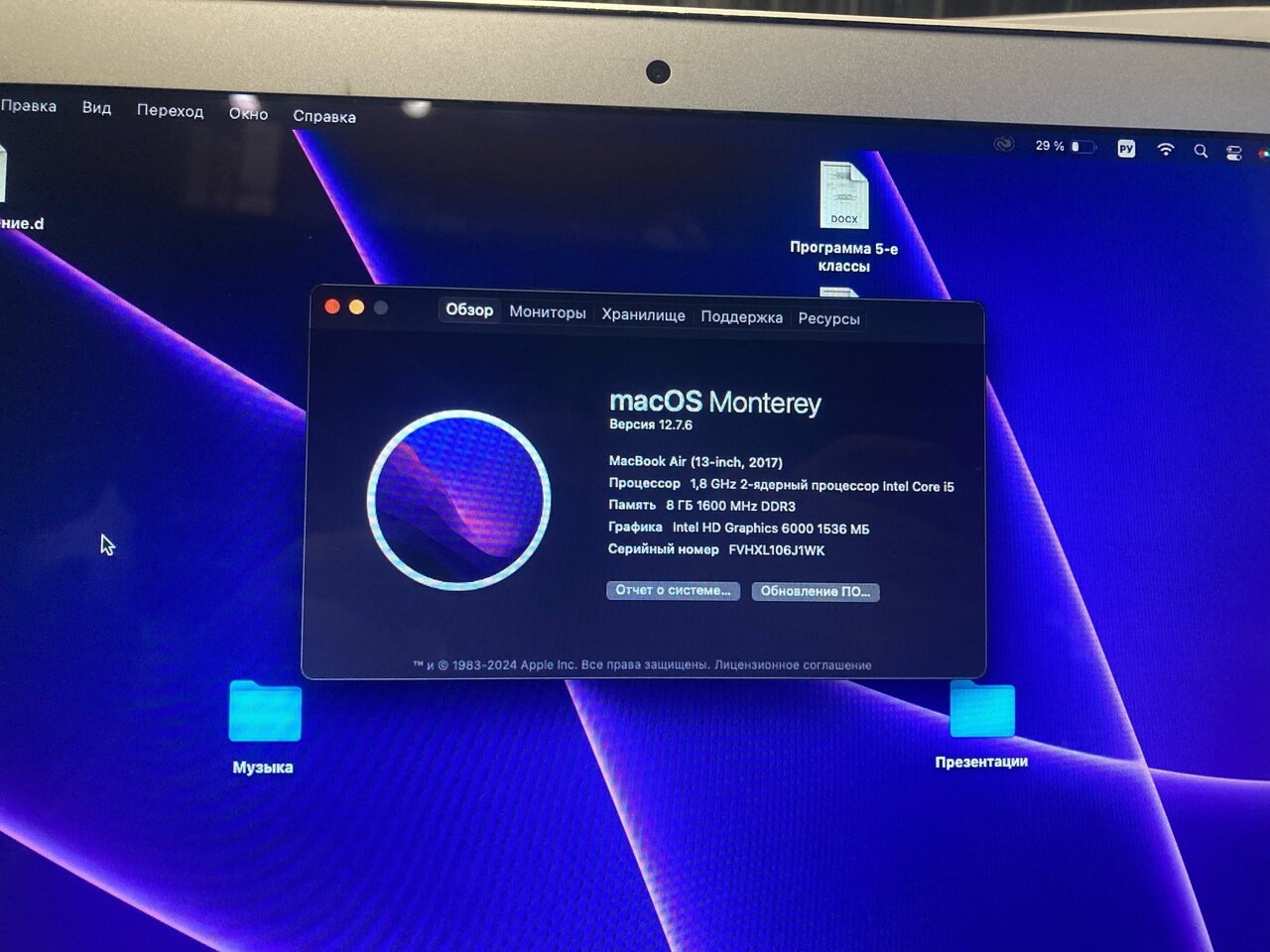 Продам MacBook Air 13’ , отличный ноутбук, красочный, качественный экран, хорошее железо. Батарея держит очень хорошо. Качественный, приятный алюминиевый корпус. Полный комплект ( коробка, зарядное, ноут и документация) Установлена MacOS Monterey . Для работы подойдёт отлично, ноутбук просто летает. Макеевка 22 000p +79494102623
