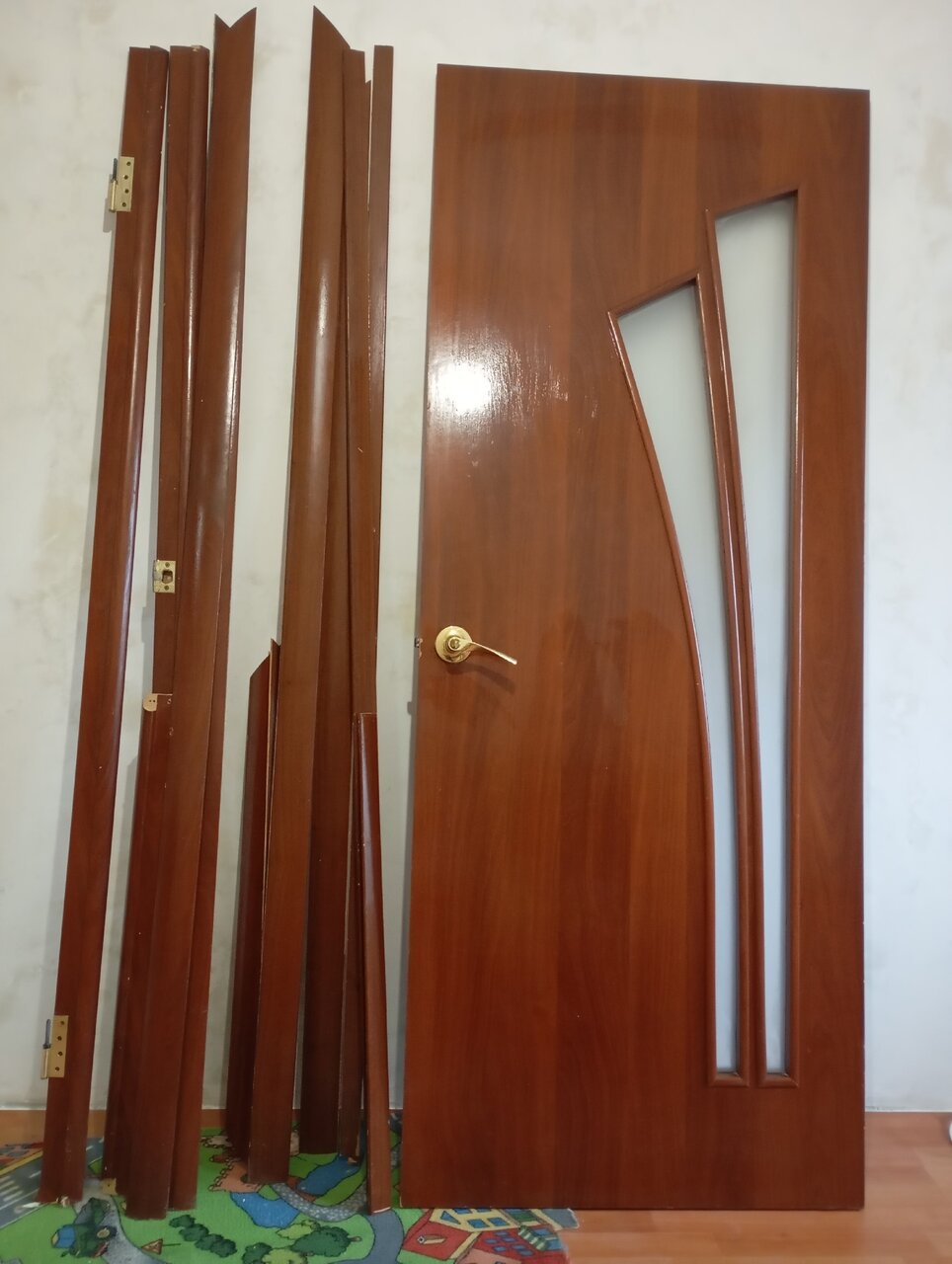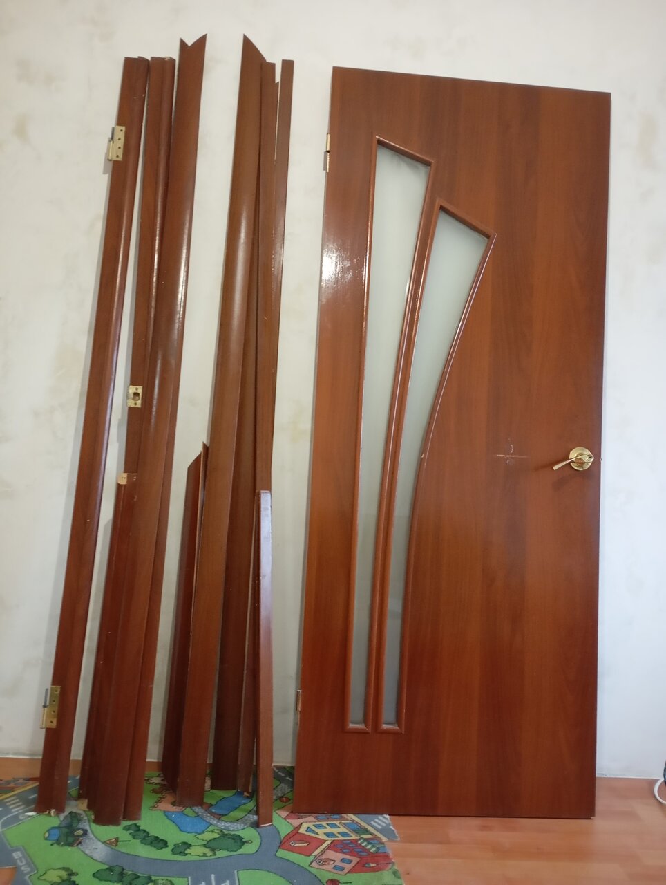 Продам б/у двери межкомнатные с вставкой из матового стекла 800*2000 с дверной коробкой, наличниками и добором в комплекте.